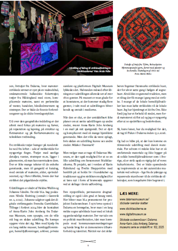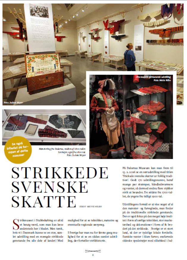 Artiklen handler om en udstilling af strikkede svenske skatte på Dalarnes Museum