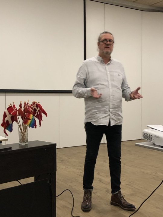 Efter aftensmaden var der foredrag om ”Bæredygtigt Garn” ved Kenneth Weller fra Garnudsalg. dk